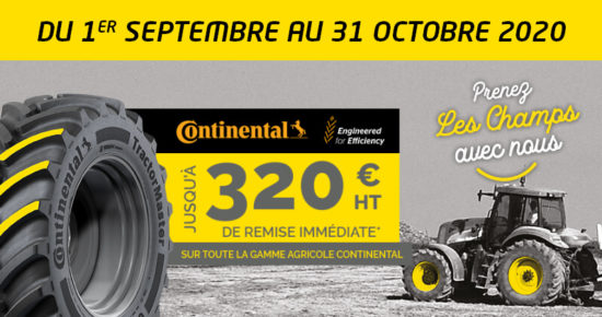 Du 1er Septembre au 31 Octobre 2020, pour l’achat de pneumatiques Agricole Continental, profitez de l’offre jusqu’à 320€* de remise […]