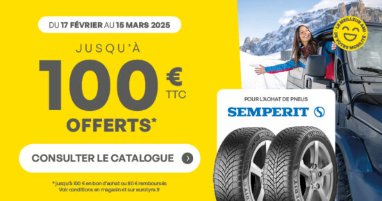 Du 17 février au 15 mars 2025, jusqu’à 100€ offerts en bon d’achat ou 80€ remboursés pour l’achat de pneus […]